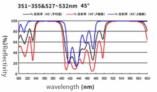 spectral curve with dual wavelength 351-355nm & 527-532nm laser reflector