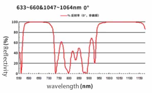 spectral curve with dual wavelength 633-660nm & 1047-1064nm laser reflector