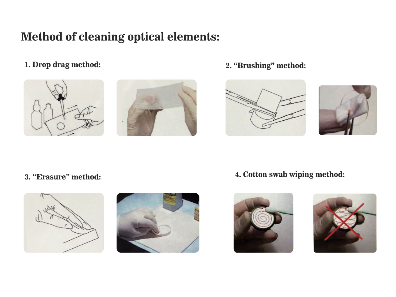 1. Try to use optical elements in a clean and low dust environment. Since the grease on the hands or skin will pollute the optical elements, when taking the optical elements, wear dust-free gloves or finger covers, and do not directly contact the lens surface.